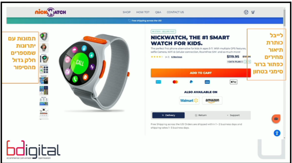 - הוספת סימני ביטחון (כרטיסי אשראי, לוגואים של Walmart/Amazon).