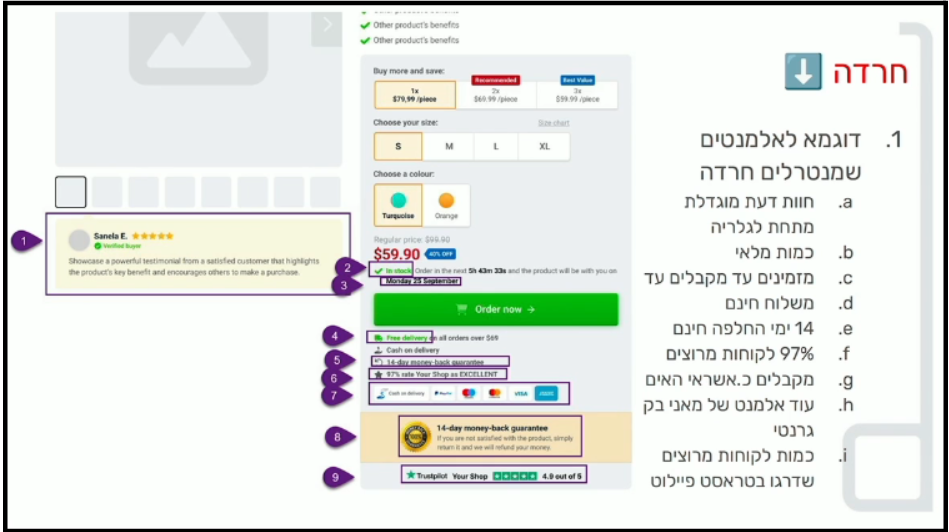 - דחיפות חיצונית: מבצע מוגבל בזמן, טיימר, כמות יחידות אחרונה, או “הזמן עד 11:00 וקבל היום”.