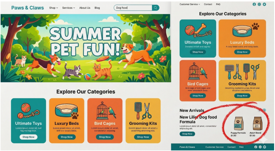 - הקשר (Context): אם גולש חיפש “מזון לכלבים”, אל תנחיתו אותו בעמוד הבית הכללי.